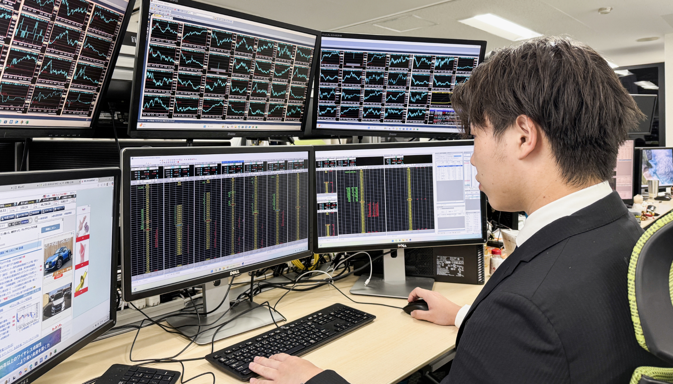 確かな実績を支えるのは、最新の設備・環境にあります。ディーラーの世界ではスピードが生命線。高速回線と高性能な機材で、精度の高い取引を支えます。