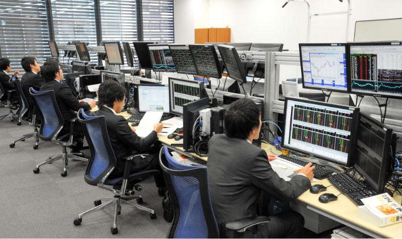 ゆたか証券では主に日本株を対象に、社員一人ひとりが市場の動きを見極めながら、自らの判断で取引を行います。
